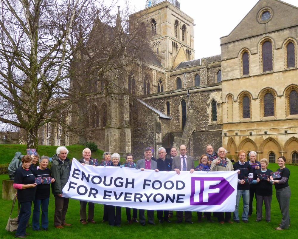 An enthusiastic group of people gathered in the grounds of Rochester Cathedral to launch and show its support for the national IF campaign (http://www.enoughfoodif.org) which was publicised earlier in January. Among the group was local MP Mark Reckless, the Bishop of Tonbridge, Dr.Brian Castle, and the Dean of Rochester, Dr.Mark Beach.