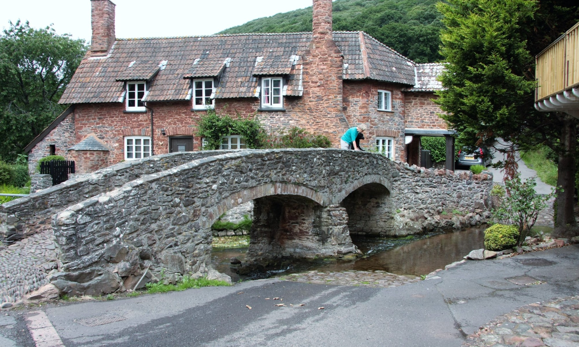 I was first drawn to Allerford to admire its remarkable packhorse bridge. In the many times that I have visited the village, I find myself attracted to this structure which has crossed the river Aller for over 500 years. It’s a mystery to me why I am attracted to this particular bridge, rather than to the many other packhorse bridges dotted across Exmoor. This bridge is a vital trade artery for the whole region and is constructed so that packhorses can cross the river laden with goods. The parapets on either side of the bridge are low so as not to interfere with the overhanging loads on the horses’ backs.
